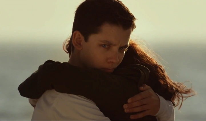 Ender and Valentine embracing on the lake.