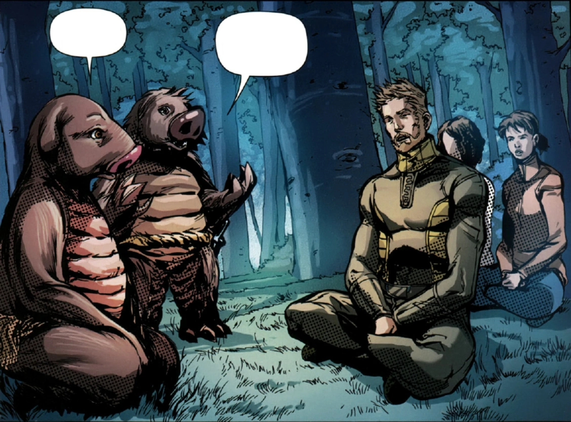 Andrew discovered that Miro had been hurt trying to climb the fence that surrounded the colony of Milagre, separating the Pequeninos from the humans. Andrew and Lusitania's leaders raced to save Miro's life. There, Andrew and Ela convinced the Pequenino named Human to take them to the Pequeninos' leaders, the females known as the Wives. Using Human as a translator, Andrew spoke with a wife named Shouter. With her, he wrote up a treaty that would define the relationship between humans, Pequeninos, and Formics on Lusitania.[2]