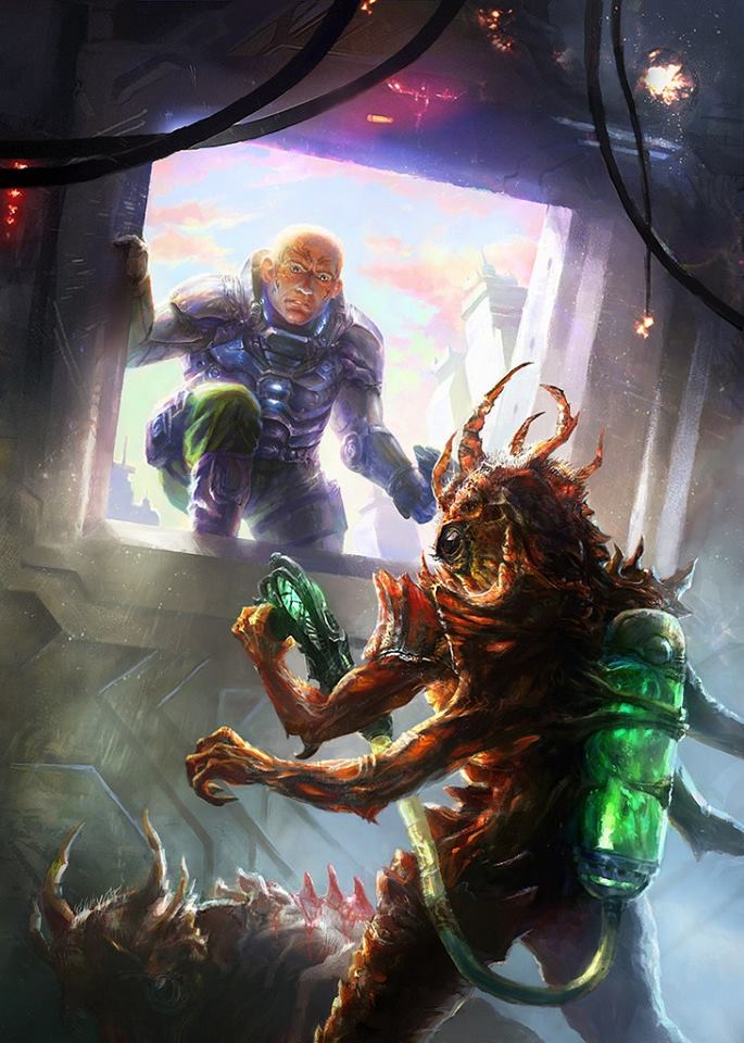 Mazer sees a Formic soldier for the first time, from the cover of the French edition of Earth Afire.